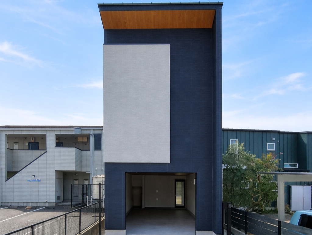 敷地条件に合わせて縦のラインを活かしたガレージハウス